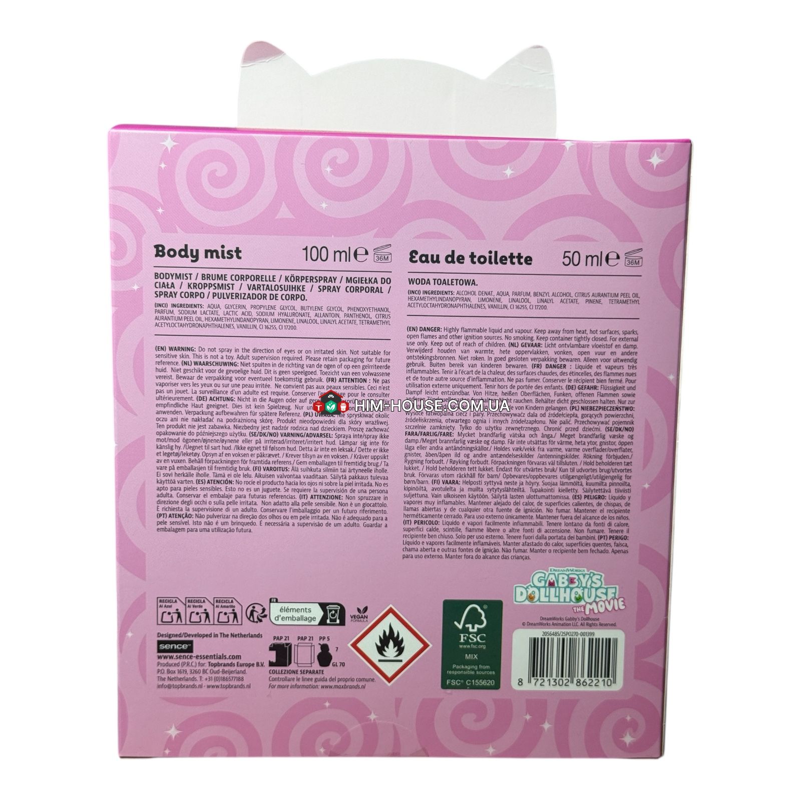 Подарунковий набір Sence Gabby’s Dollhouse — це ароматний дитячий набір, створений для маленьких шанувальників мультфільму Gabby’s Dollhouse. Набір ідеально підходить як перший легкий аромат для дітей або ж як подарунок на свято. Він наповнений веселим, свіжим і життєрадісним ароматом, який зробить день дитини ще приємнішим. Аромати легкі та оптимальні для використання у повсякденному житті — на прогулянці, у садочку чи на святі.