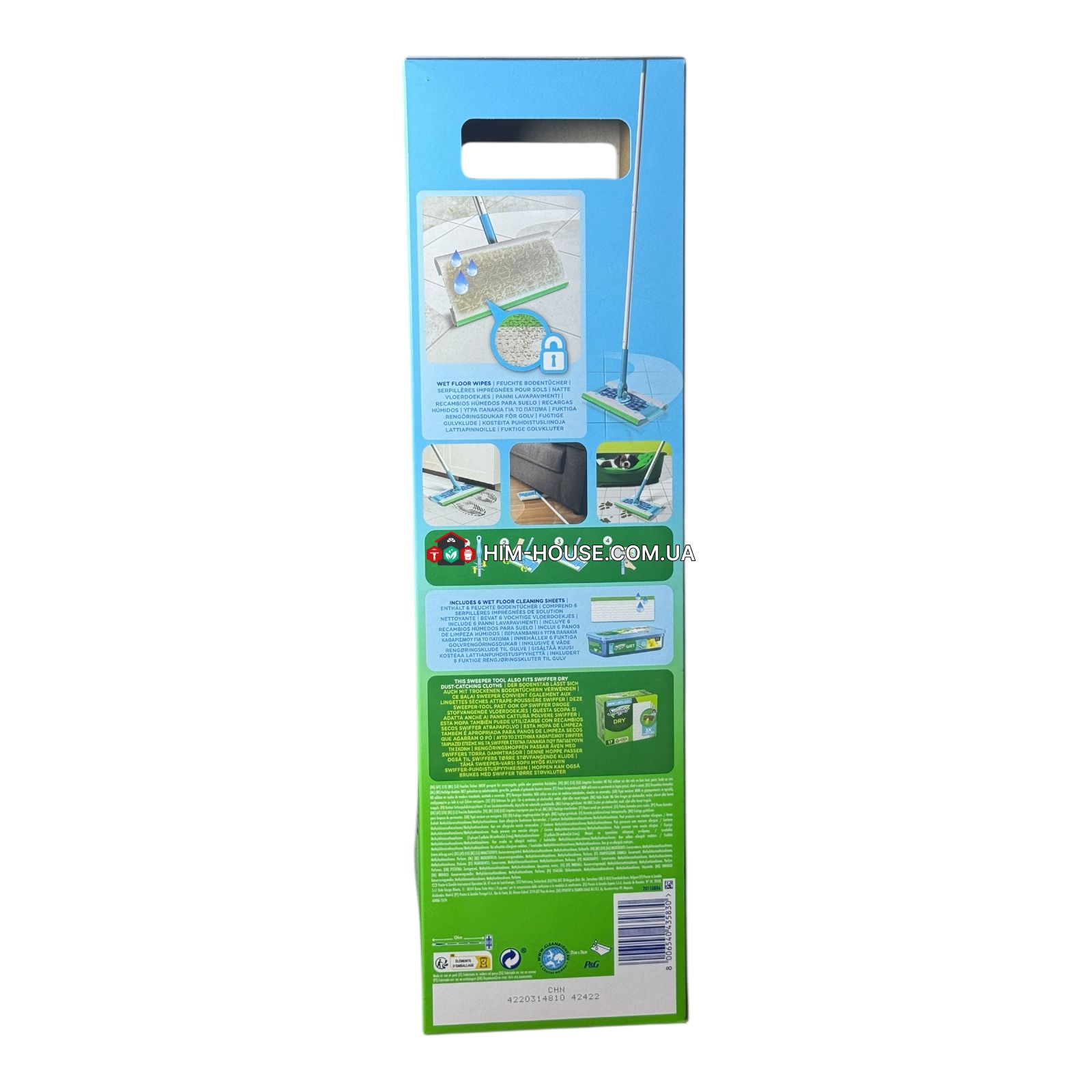 - Це стартовий набір для вологого прибирання: швабра Swiffer Sweeper + 6 вже просочених вологих серветок
