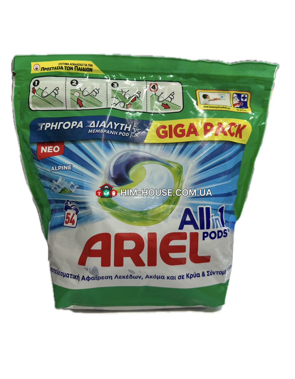 Ariel alpine капсули для прання All in 1 Pods 54шт