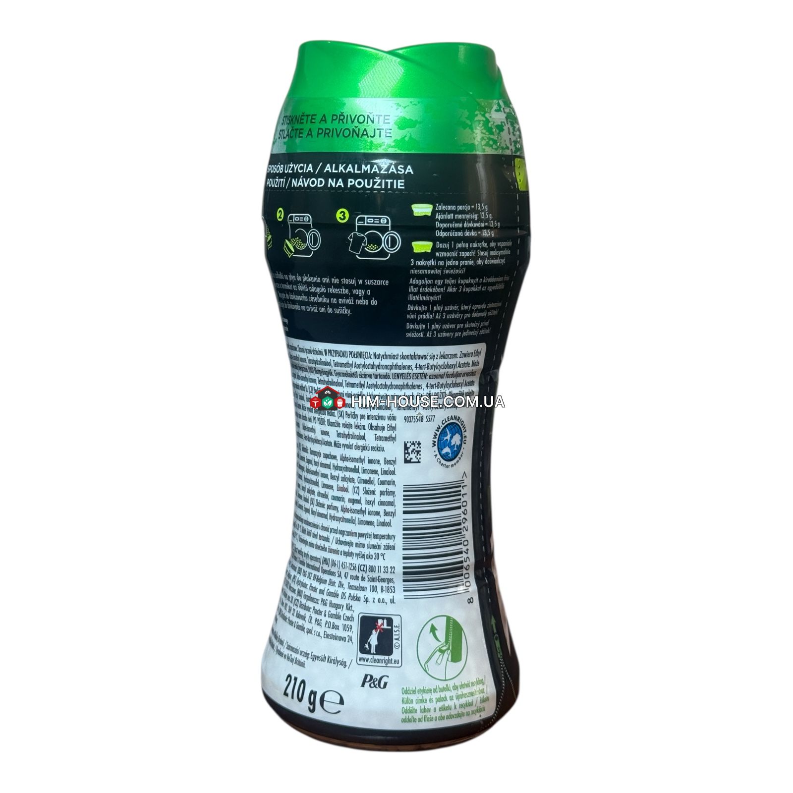 Детальний опис: Ароматизатор у гранулах Lenor Ariel, 210 г Ароматизатор Lenor забезпечує до 12 тижнів підвищеної свіжості (під час зберігання). Гранули мають концентрованіший аромат, ніж звичайні рідкі ополіскувачі та нейтралізують найстійкіші запахи, зокрема поту, тютюнового диму тощо. Сучасна варіація класичних ароматів із білих квітів із тим же ароматом, що й усім відомий мийний засіб Ariel. Призначені для прання тканин із натуральних, штучних і синтетичних волокон. М'які гранули підходять для всіх видів одягу, особливо для спортивної, рушників, постільної білизни. Застосовується для всіх типів пральних машин та для ручного прання. Спосіб застосування: Наповніть ковпачок бажаною кількістю гранул і додайте в білизну. Пральний засіб і кондиціонер для білизни відміряйте як зазвичай. Ароматизатор починає працювати з початком прання, повільно проникаючи у волокна тканини. Заповніть всю кришку гранулами для дуже інтенсивного аромату! Не рекомендується використовувати більшу кількість засобу.
