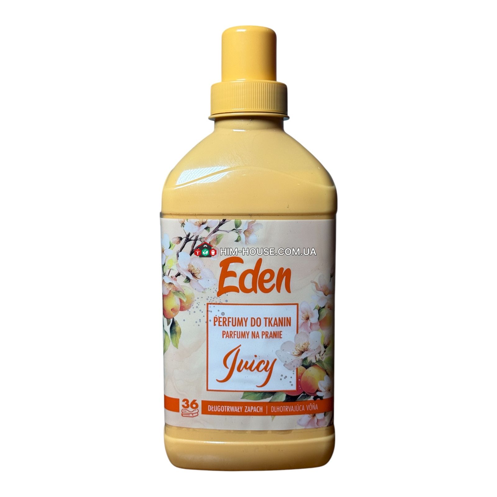 Парфумований кондиціонер Eden Juicy — спеціальний засіб для догляду за тканиною, який поєднує функції пом’якшення і ароматизації білизни. Після використання речі стають м’якими, приємними на дотик, легше прасуються, мають свіжий фруктово-нежний аромат. Засіб підходить для більшості тканин і для різних режимів прання — як ручного, так і в пральній машині.