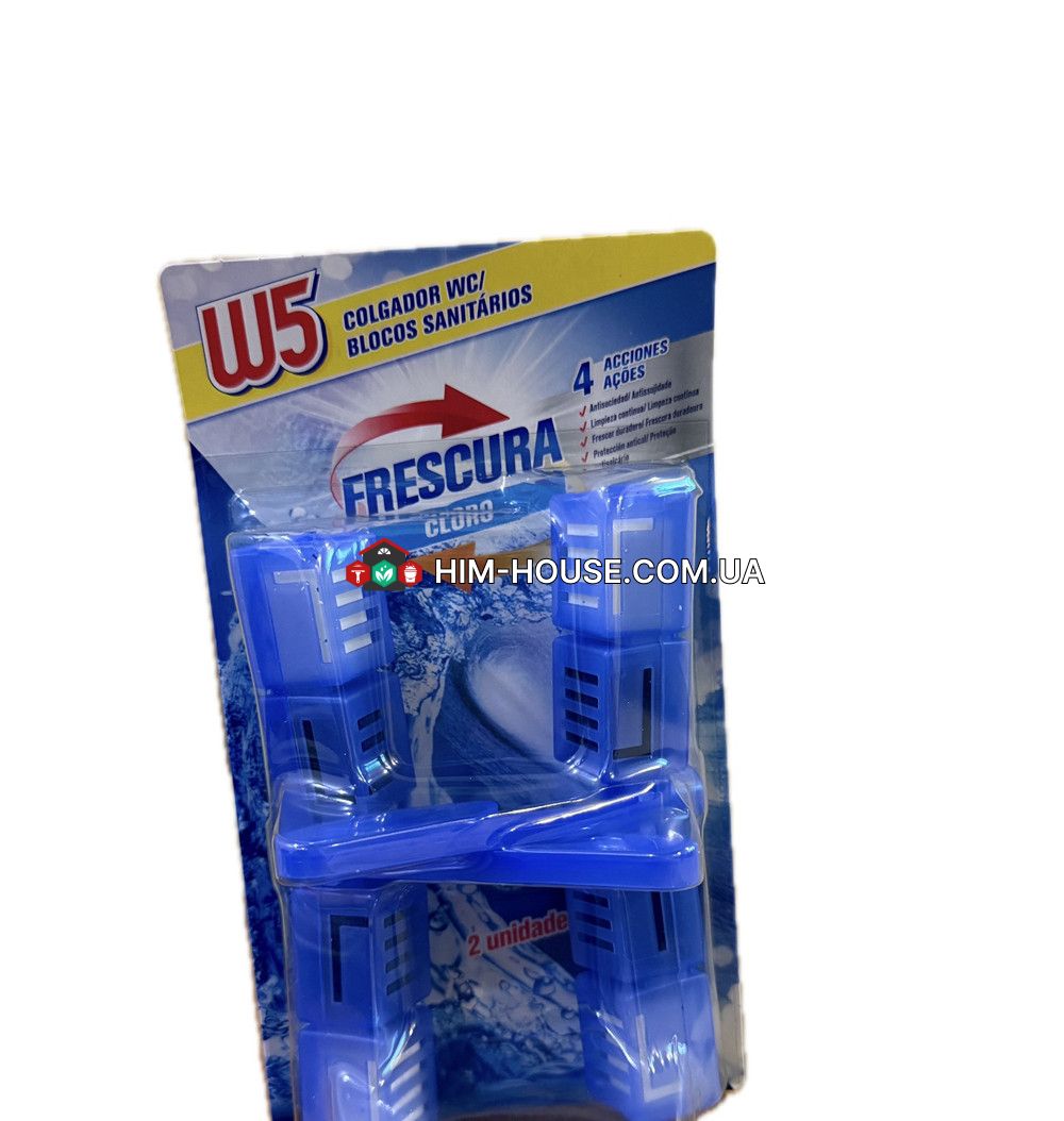 Туалетний блок для унітазу W5 cloro 2*48г має такі особливості: Надає свіжого аромату. Запобігає утворенню накипу та бруду. Активно чистить. Створює багату піну.