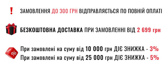 Оплата кур'єру здійснюється при отриманні товару. Ви можете оглянути товар перед оплатою та розрахуватись з кур'єром зручним для вас способом оплати, як готівкою, так і карткою через термінал.