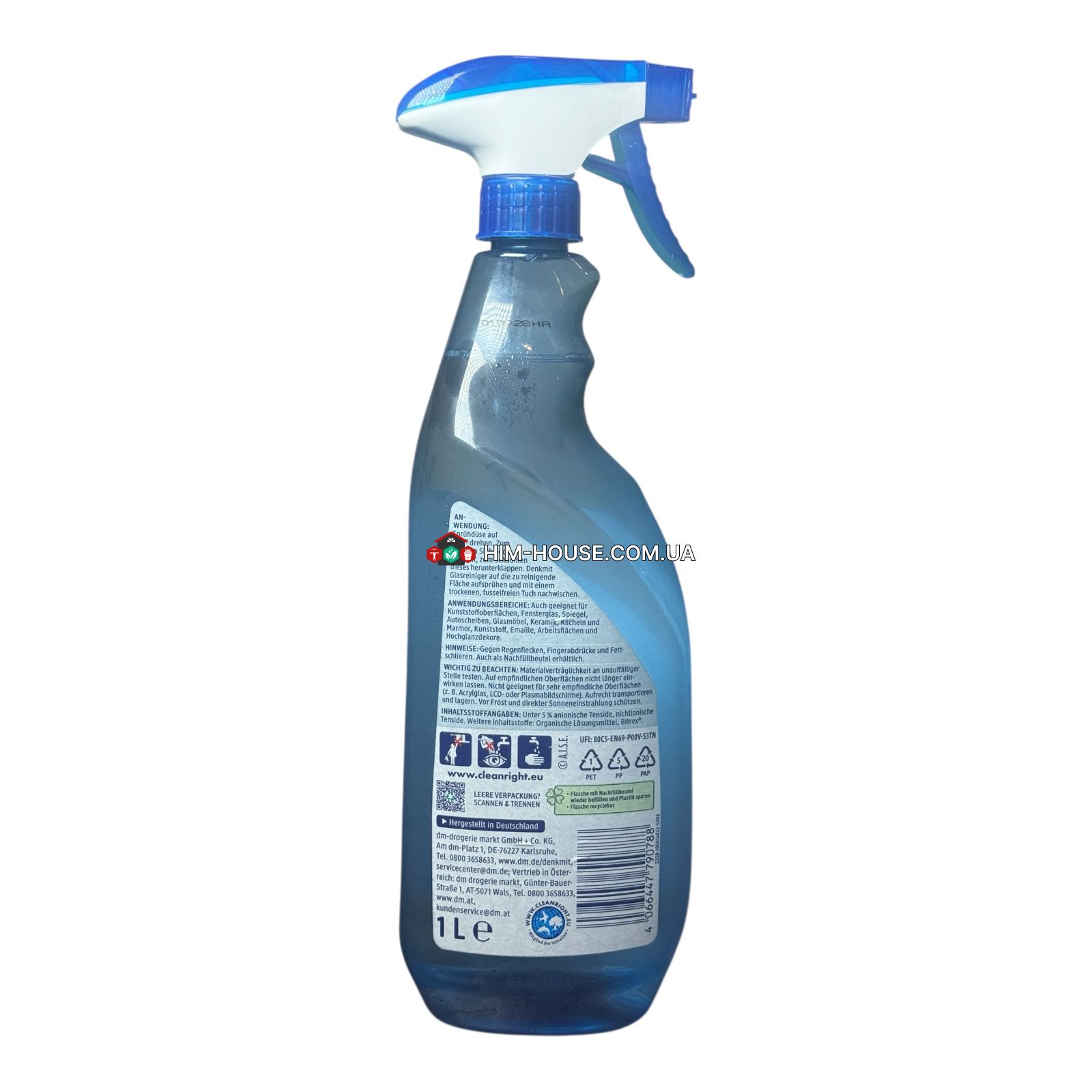 Засіб для миття вікон та скла Denkmit Glasreiniger 1000мл. 4010355489241 Засіб Denkmit Glasreiniger з антивідблисковою формулою, знижує повторне забруднення завдяки водовідштовхувальному ефекту, зручно у використанні, швидко сохне та не залишає розлучень. Підходить для очищення скла, дзеркал та кришталевих виробів. Також можна застосовувати для всіх поверхонь, що миються: двері, меблі, кахель, світильники. З бітрексом, без барвників, без латексу, без парфумів
