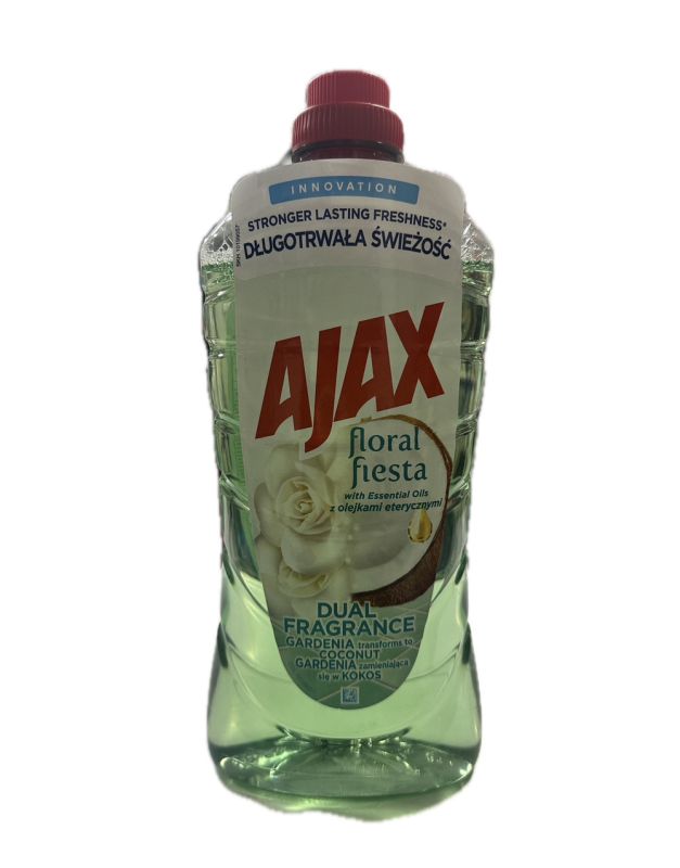 Універсальний очищаючий Ajax для різних поверхонь очищає дуже ефективно, знищує бактерії та мікроорганізми та залишає прекрасний аромат. У розведеному вигляді Ajax може бути використаний для миття підлоги, плитки, стін, а в нерозведеному – для видалення сильних забруднень на кухонних плитах, раковинах, умивальниках. Продукт дуже ефективний.